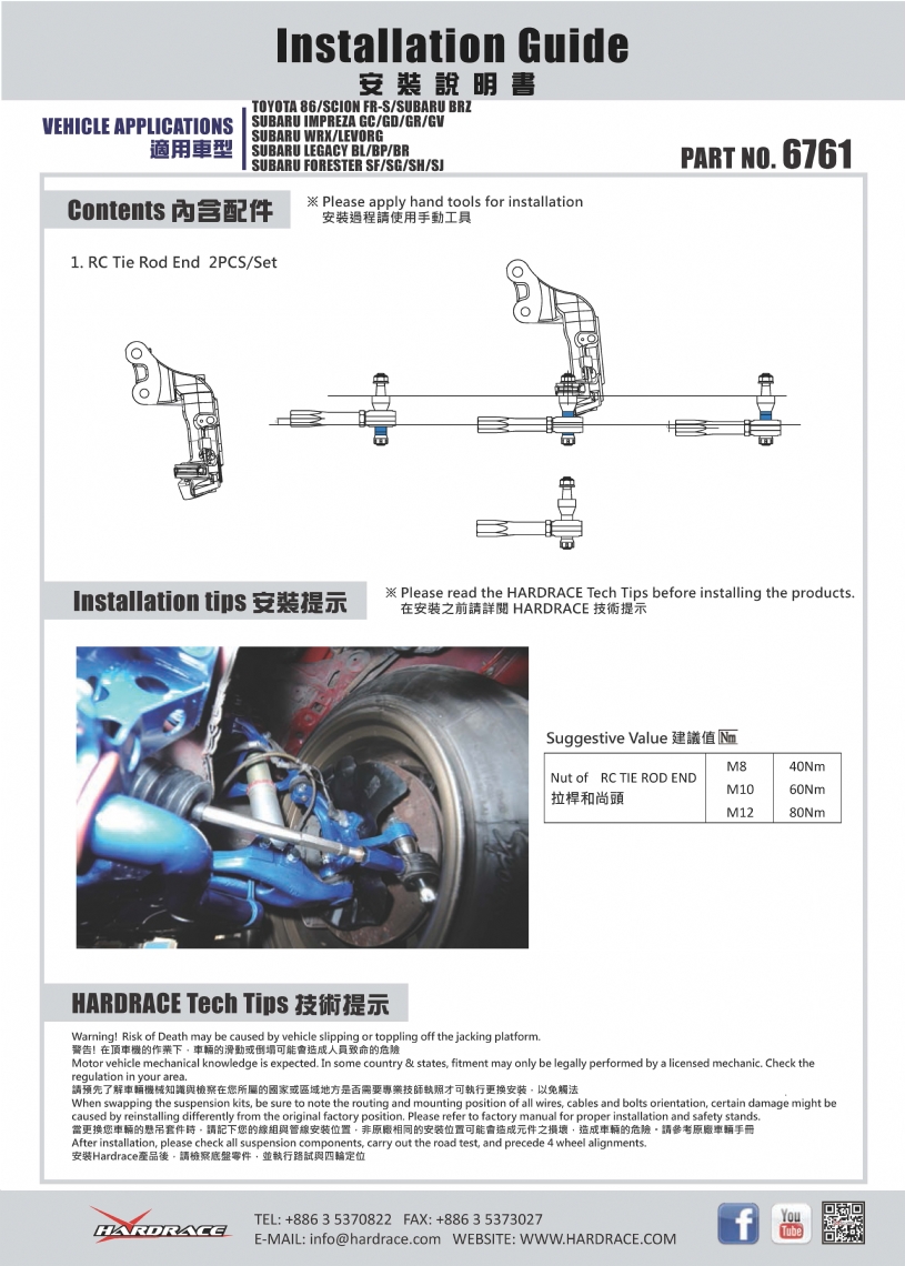 Hardrace Rc Tie Rod End Scion, Subaru, Toyota for